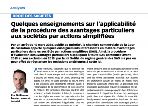 Quelques enseignements sur l’applicabilité de la procédure des avantages particuliers aux sociétés par actions simplifiées – Option Droit & Affaires 24/04/2024